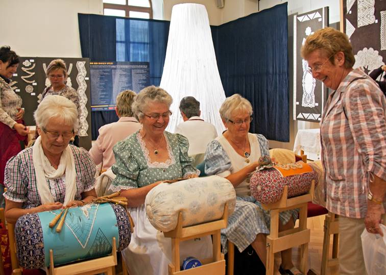 Man konnte den Klöpplerinnen aus Ehrenfriedersdorf über die Schulter schauen.