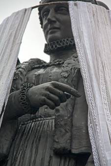 3300 geklöppelten Bändern am Barbara-Uthmann-Denkmal.