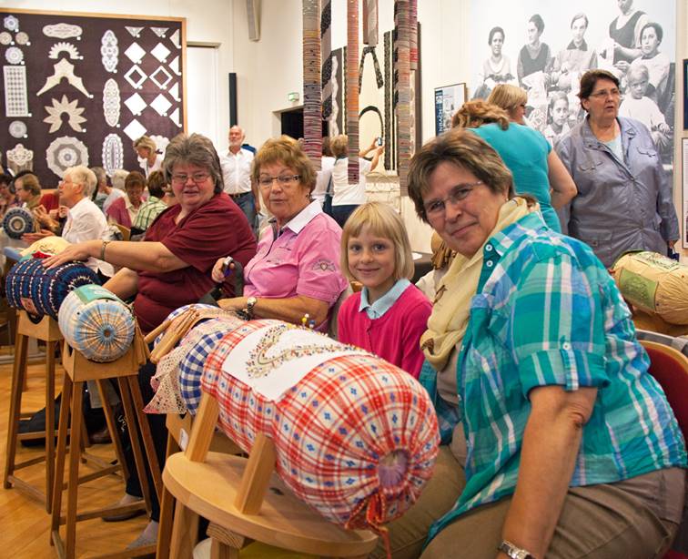 Schauklöpplerinnen saßen bereit, um den Gästen ihr Handwerk zu zeigen.